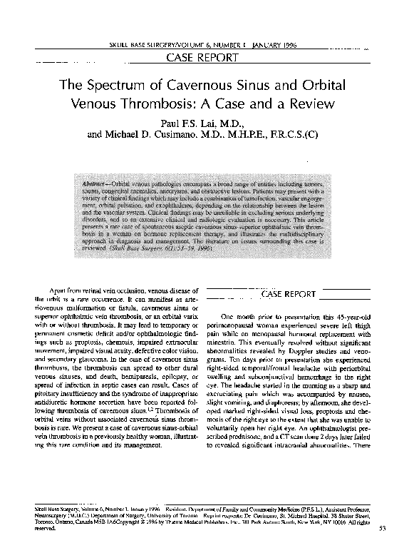 Pdf The Spectrum Of Cavernous Sinus And Orbital Venous Thrombosis A Case And A Review Michael Cusimano Academia Edu