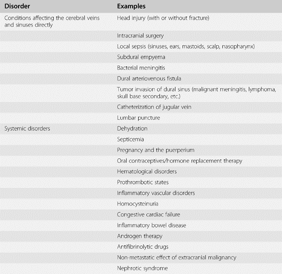 Causes Of And Risk Factors Associated With Cerebral Venous Sinus Download Table