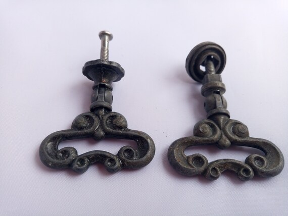 2 Vintage Metall Klappschublade Knopfe Shabby Metall Schrank Etsy
