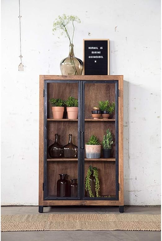 Giga Vintage Vitrine Industrie Noa Metall Holz Schrank Vitrinenschrank Sideboard Amazon De Kuche Haushalt