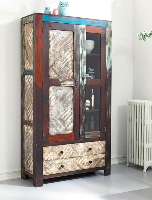 Expendio Vitrine Punjab 100x190x41 Cm Akazie Metall Glasvitrine Schrank Used Look Vintage Amazon De Kuche Haushalt